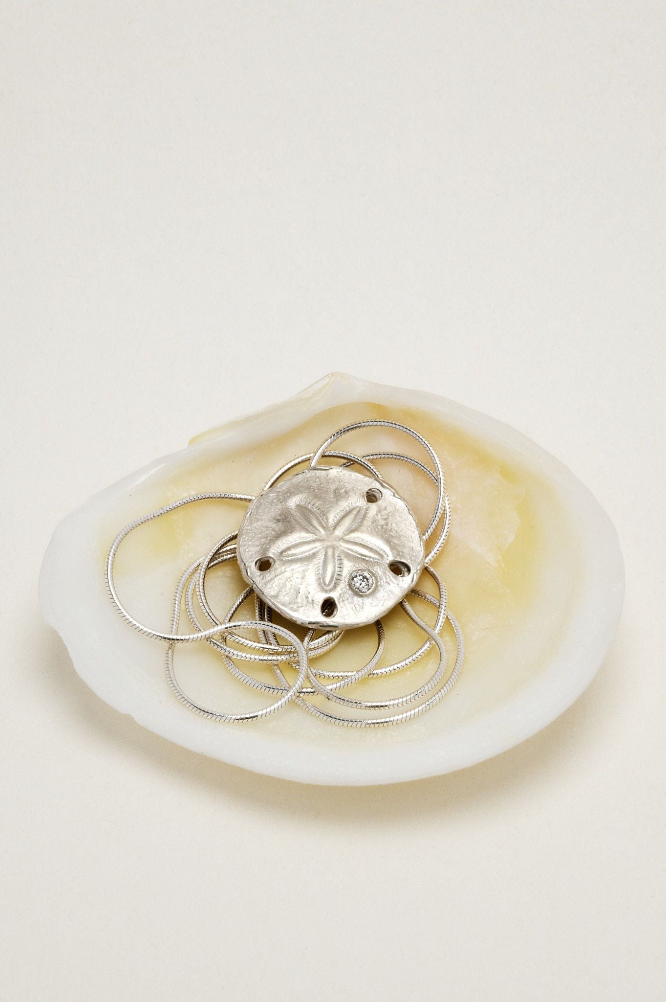 925 Sterling silver textured Sand dollar pendant with a 10 point natural flawless round a brilliant diamond.